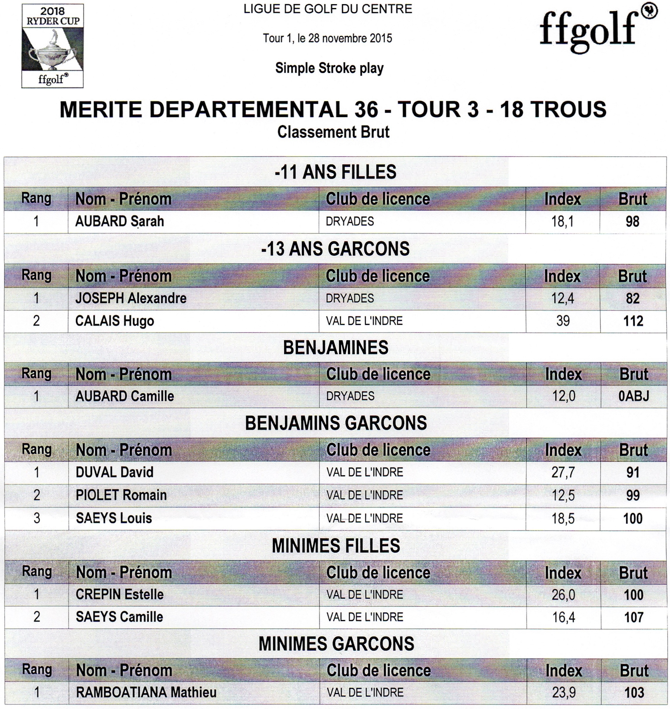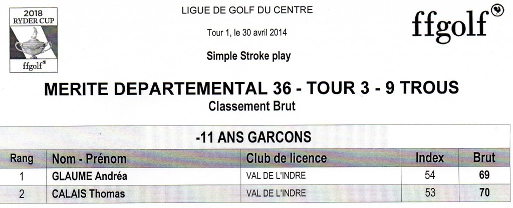 MÉRITE DÉPARTEMENTAL 18 TROUS STROKE PLAY