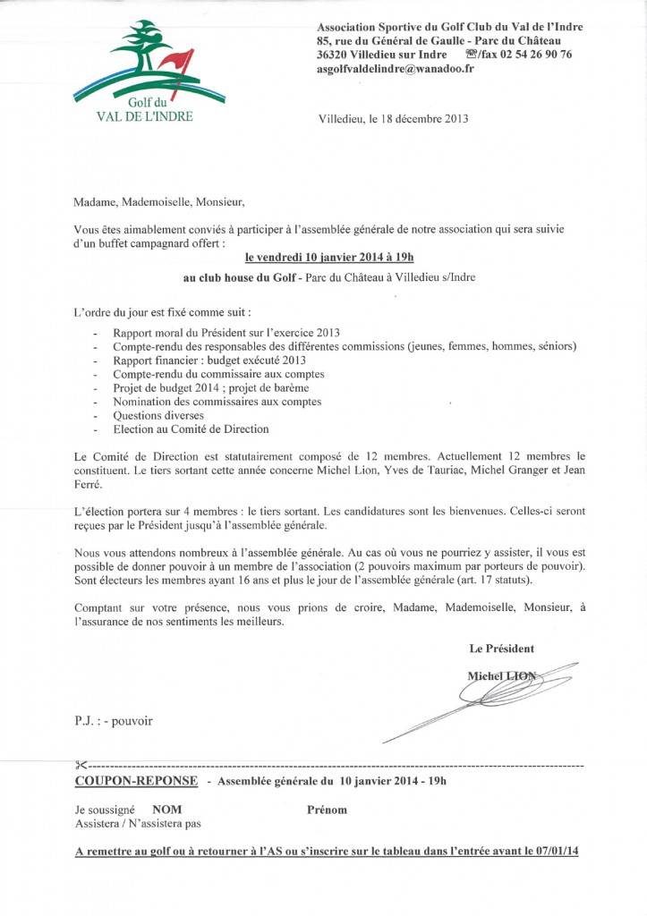 Assemblée Générale du 10 janvier 2014