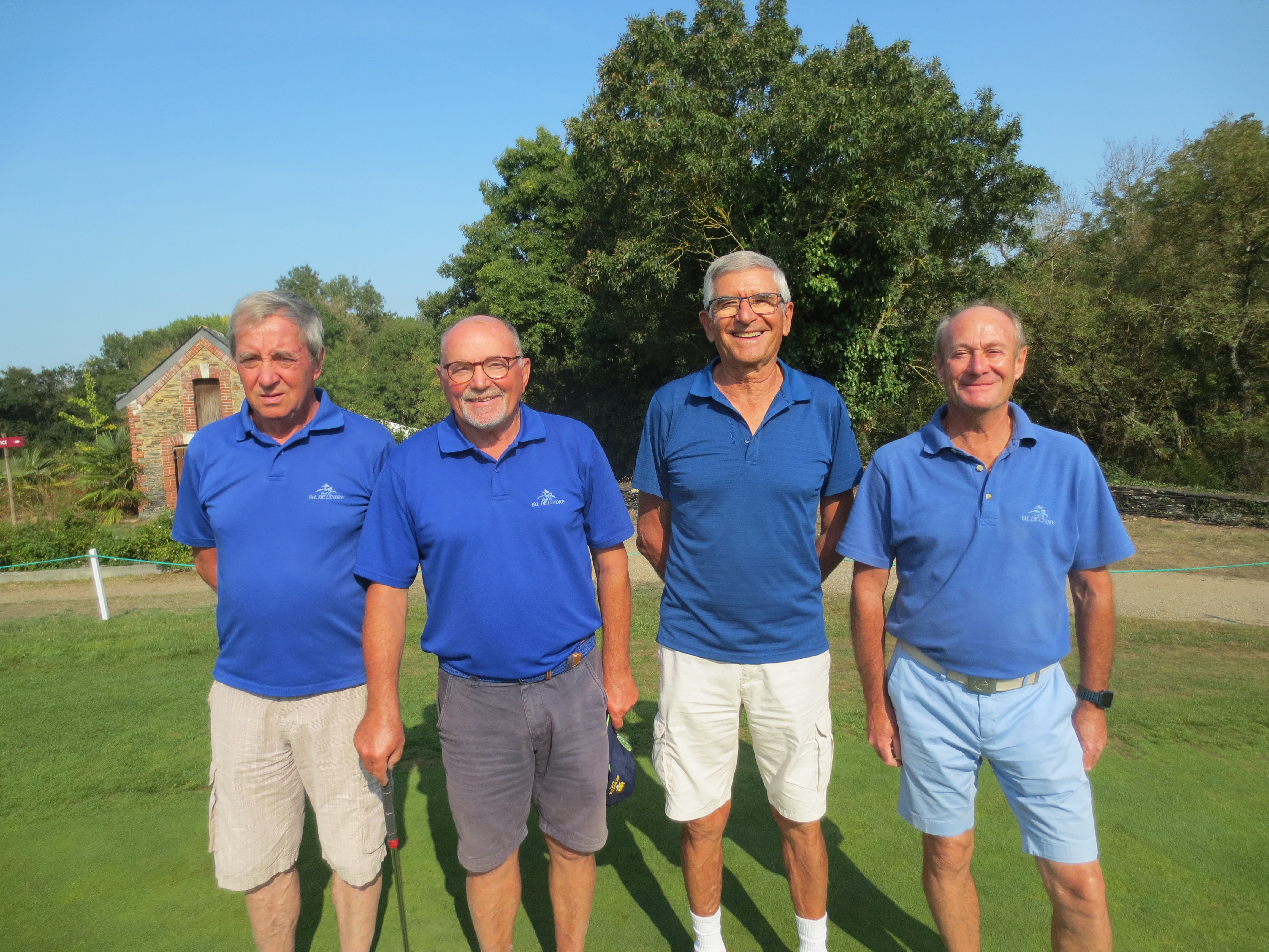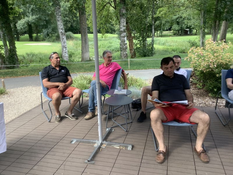 Objectif, le maintien, avec seulement 4 joueurs suite à plusieurs indisponibilités. Le golf d’Angers est un beau golf, pas très long, technique, les greens sont petits avec beaucoup de pièges. A l’issue de la première journée, COUPET.C 89, MARTIN.D 92, DEVAUX.D 92 et MERIOT.X 101, nous sommes 21ème sur 24.La deuxième journée COUPET.C 89, MARTIN.D 90 et MERIOT.X 98. DEVAUX.D se repose, problème de dos, pour essayer de jouer le lendemain. Finalement nous terminons 21ème sur 24 et jouons en match-play pour le maintien contre LE MANS qui est 12ème. Le foursome DEVAUX/MERIOT perd 2/1, COUPET.C gagne 2/1 et MARTIN.D gagne 3/2 donc victoire 2/1.