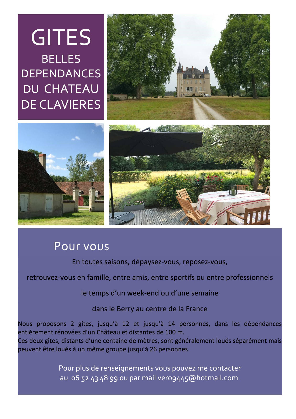 Un des partenaires historiques de l’ASGCVI nous propose de nouveaux hébergements : n’hésitez pas à en faire la publicité autour de vous !!!