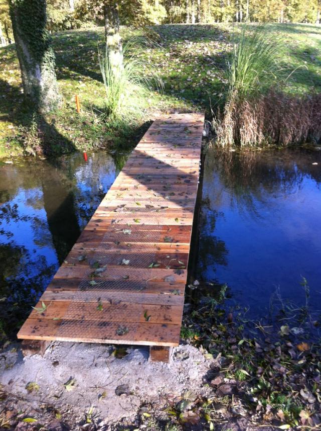 Pour faciliter le passage entre le trou 9 et le trou 18 (et éviter un détour par le pont situé vers le practice) le bureau de l’Ass., en accord avec le gestionnaire, a installé une passerelle. Recouverte d’un grillage évitant les glissades, elle est opérationnelle depuis cette fin de semaine. La même opération de pose de grillage a été également réalisée sur les deux autres ponts du trou 1. Merci à l’ingénieux en chef, Serge Demaumont, et à ses manoeuvres : Jean, Michel, Jackie, Jacques et David.