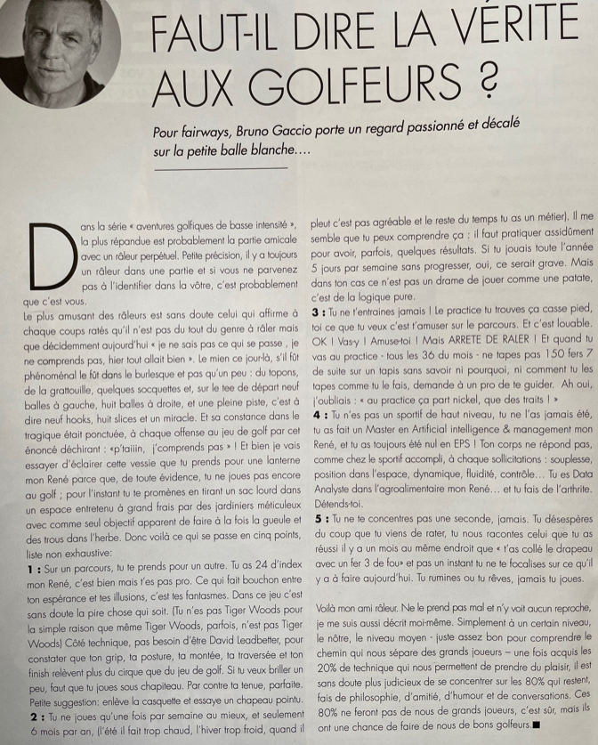 Le petit texte publié hier n’a pas atteint sa cible. Certains l’ont pris au premier degré. Qu’on se comprenne bien : l’association sportive du golf du Val de l’Indre est affiliée à la Fédération Française de Golf, elle-même placée sous la tutelle du Ministère des Sports. Quand des mesures sanitaires sont prises à haut niveau, la direction de l’association se doit de les mettre en application. En aucun cas, nous cautionnons le refus ou la contestation de présentation du Pass sanitaire pour la pratique du golf (décret n°2021-699 modifié par le n°2021-955). Il est de la responsabilité individuelle d’assumer sa position personnelle quand au bien-fondé de ces dispositions. L’Association sportive suit les directives nationales concernant la présentation du Pass sanitaire. C’est pourquoi le petit texte de notre ami Jean FERRE écrit au second degré n’est en aucun cas une caution pour les anti-vax ou autres réfractaires aux mesures actuellement imposées. Nous retirons ce texte qui leur sert d’argument fallacieux. D’autre part, les personnes chargées du contrôle du Pass sanitaire (à savoir le personnel du golf de Villedieu) n’ont pas à subir leurs diatribes virulentes, inutiles et souvent discourtoises. A bon entendeur….