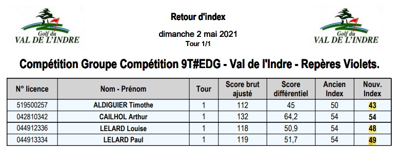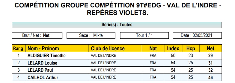 Compétition Ecole de Golf – Repères Violets – 2 mai 2021