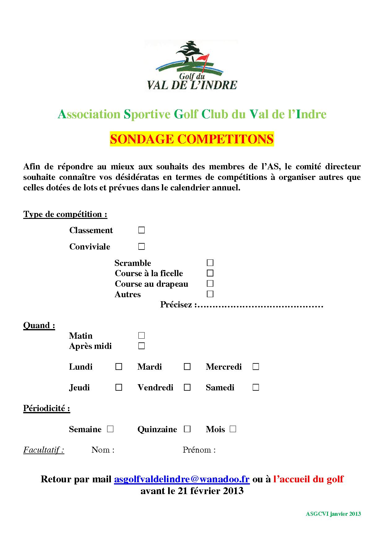 Dans le but de répondre au mieux aux souhaits des ses adhérents L’AS vous consulte au sujet des compétitions conviviales hors calendrier que vous souhaiteriez voir organisées.