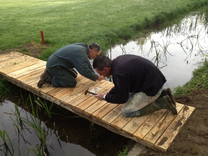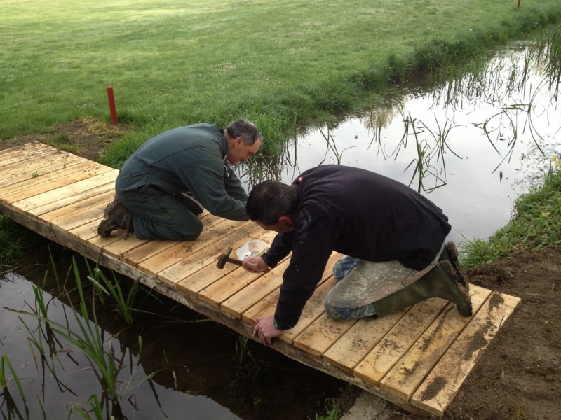Ce jour, au petit matin, les deux ponts qui enjambent le cours d’eau qui longe le trou N°1 ont été terminés.