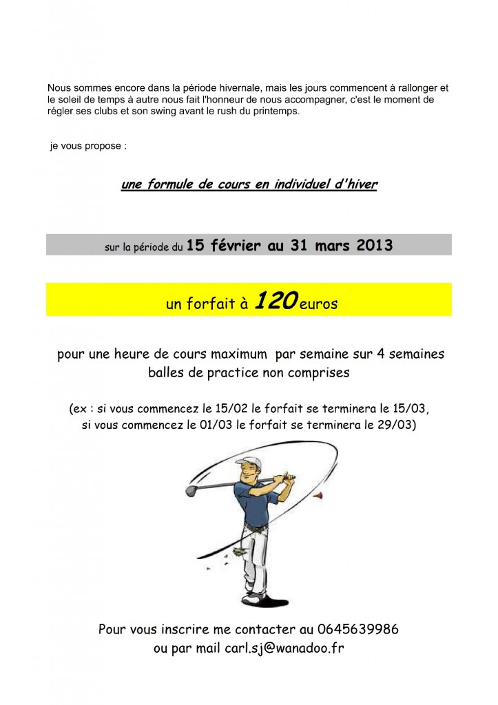 Afin de préparer au mieux cette nouvelle saison le pro vous propose une formule « Cours individuels Hiver 2013″