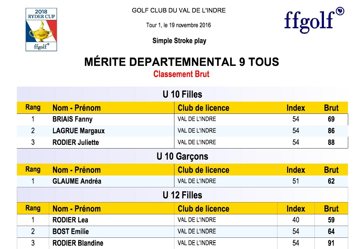 Samedi 19 novembre dernier mérite départemental 2016 au golf du Val de l’Indre.