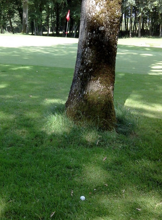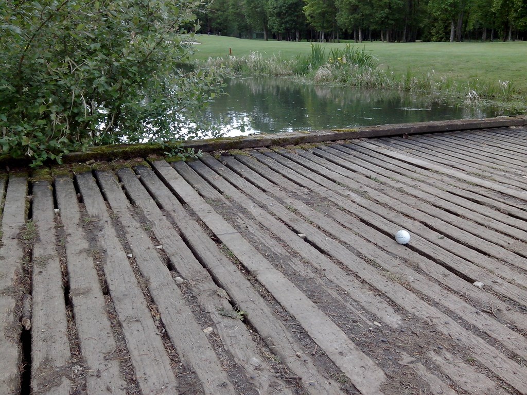 D Devaux - 14-05-2014 : cette situation évoque plutôt le vrai coup de bol ...parce que la balle est sur le pont. Au fait : peut-on poser son club sur le pont à l'adresse ? A vos règles de golf !