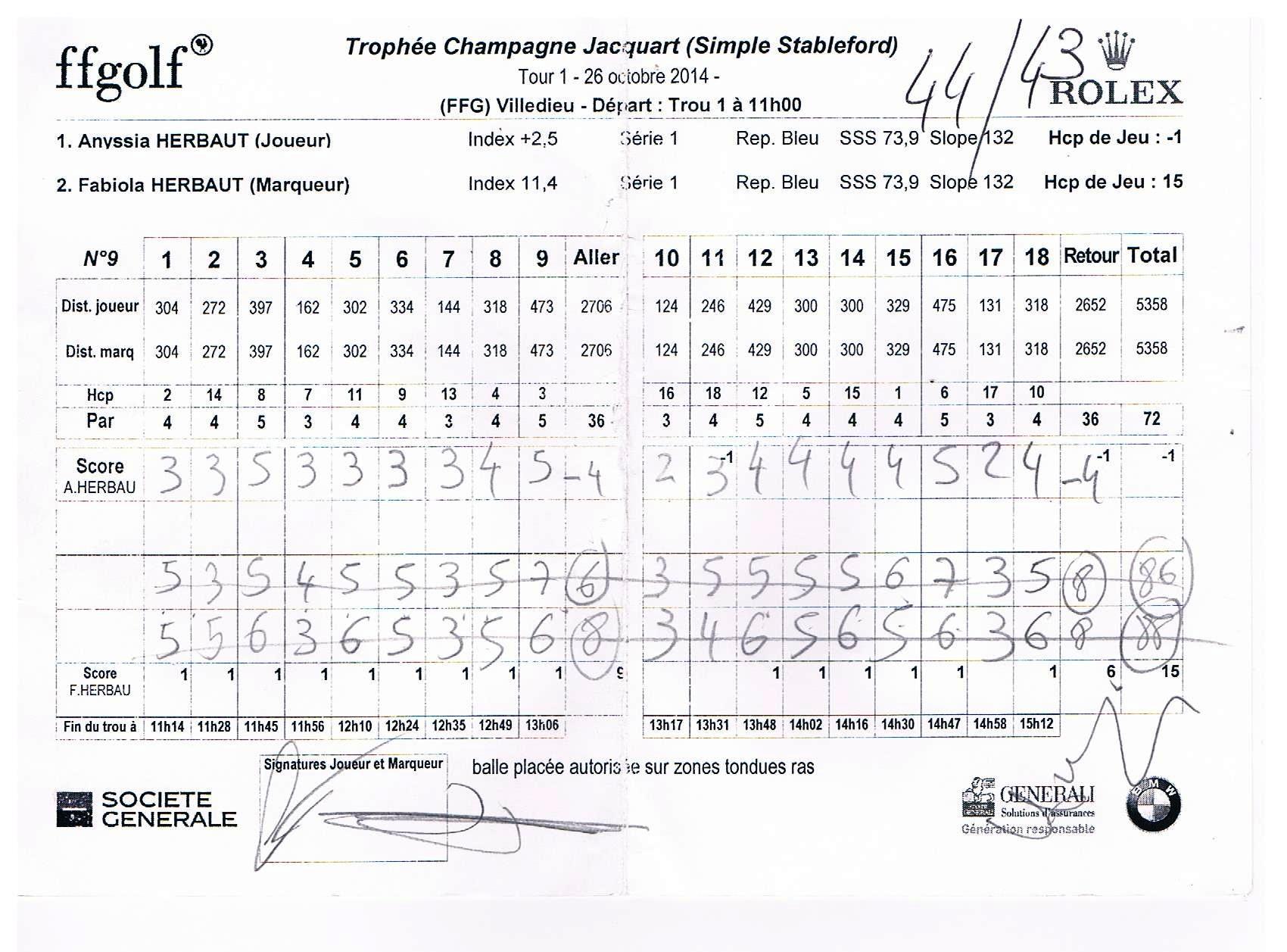 4 birdies à l’aller et 4 birdies au retour pour un score total 64 soit moins 8