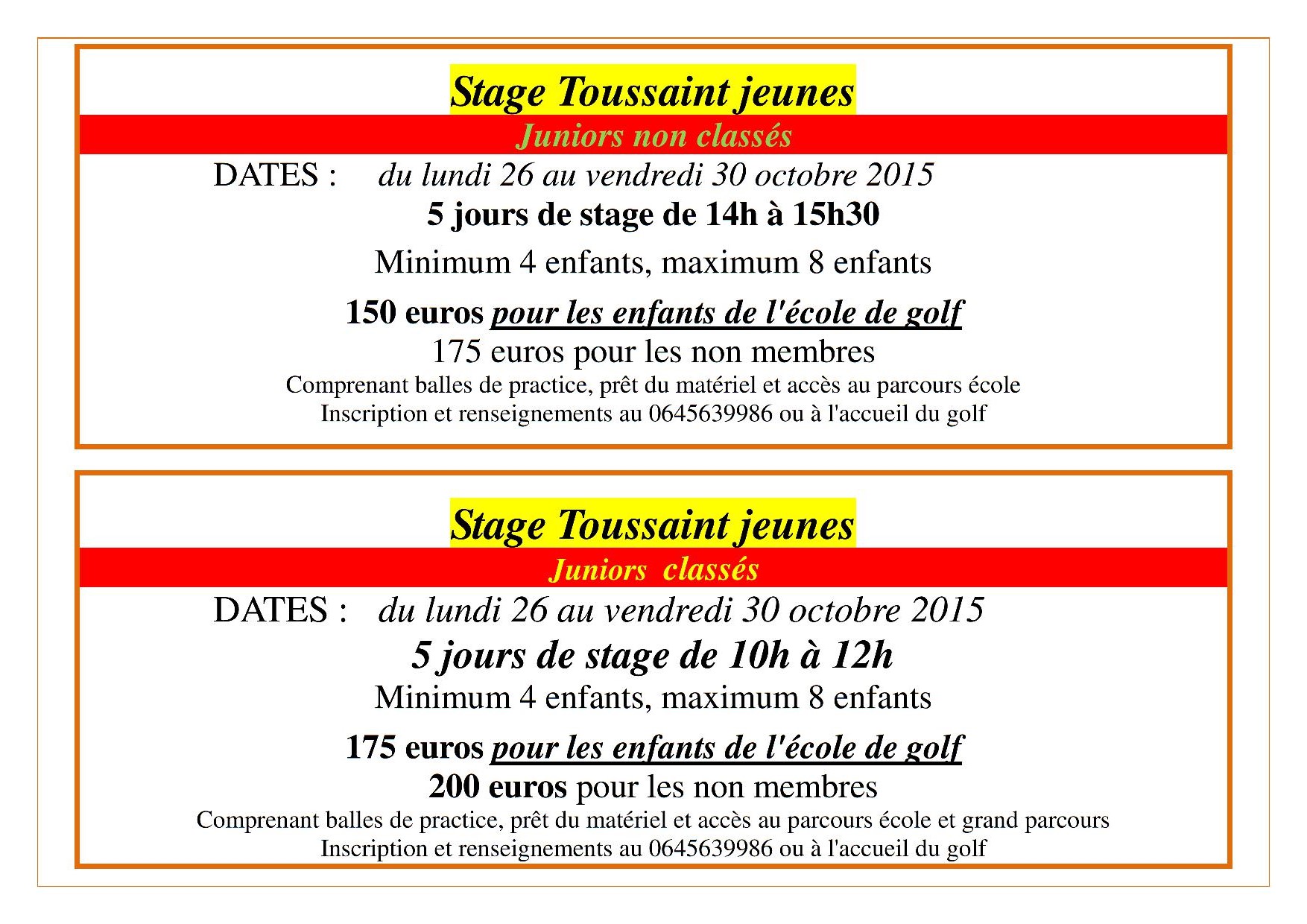 Stages jeunes de Toussaint Publié le 14 octobre 2015 par Francis Carl Jarraud propose pour les jeunes non classés et classés un stage du 25 au 30 octobre Téléchargez l’affiche